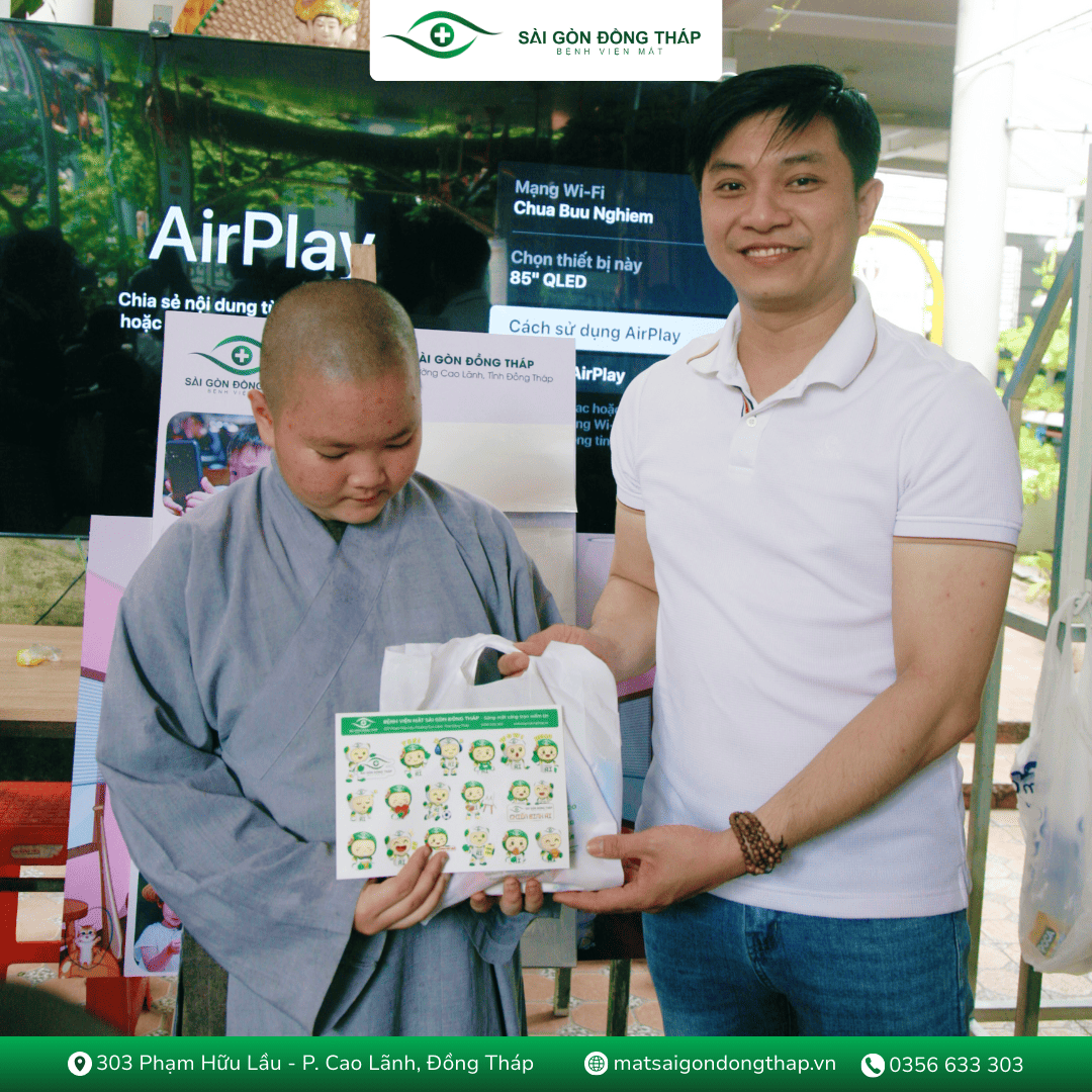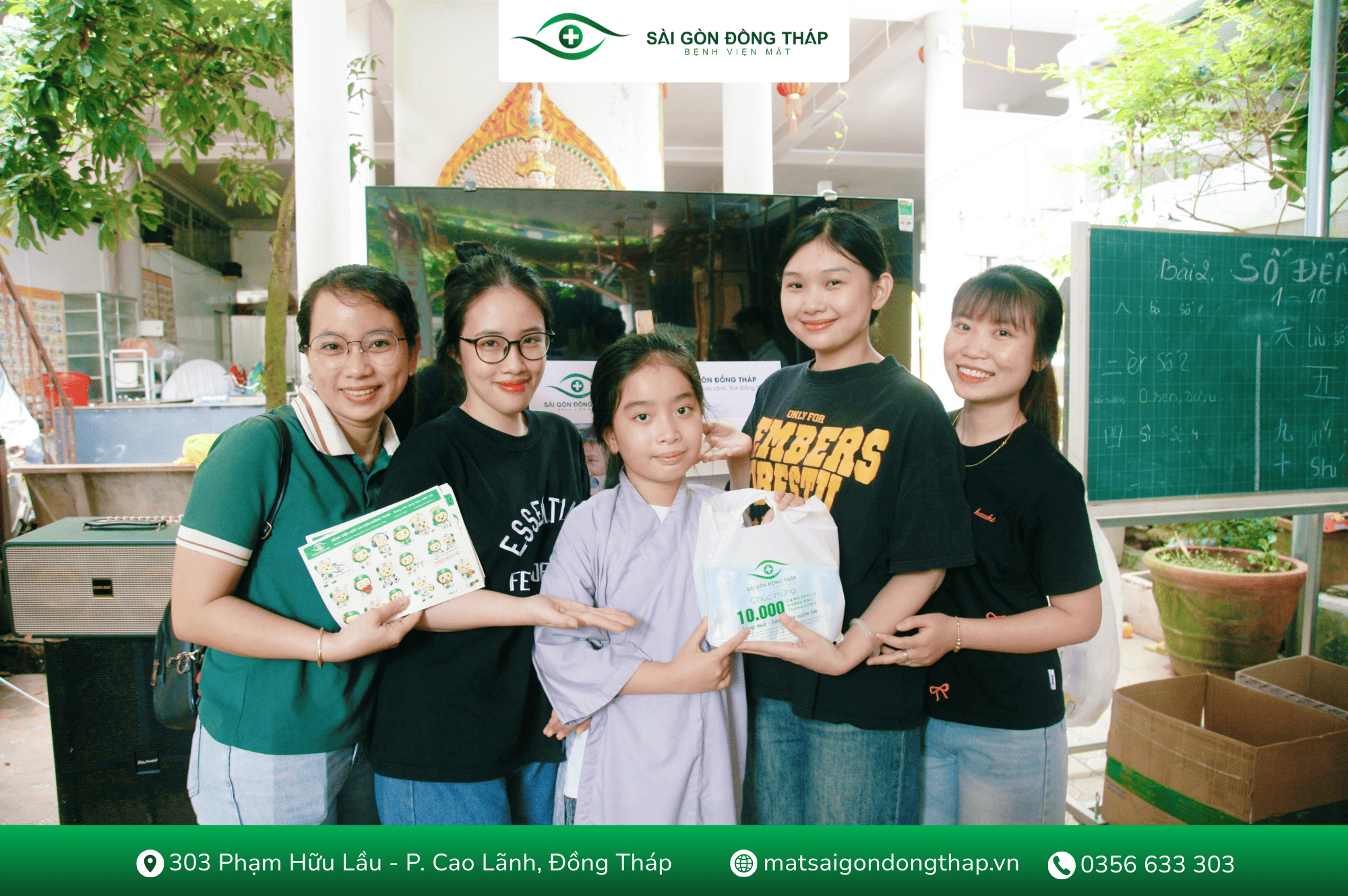 Tập thể Bệnh viện Mắt Sài Gòn Đồng Tháp đã trao tặng nhiều phần quà cùng nguồn kinh phí để cải thiện bữa ăn cho các em và các sư ni. Hy vọng rằng những món quà này sẽ mang đến sự đủ đầy hơn và một chút ấm áp trong sinh hoạt hằng ngày.
